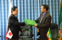 On 25 December, 2012, a signing ceremony for an Exchange of Notes for grant-in-aid for a food security program for underprivileged farmers, better known as KR II, took place between the governments of Japan and Ethiopia, represented by His Excellency Hiroyuki Kishino, Ambassador of Japan to Ethiopia and H.E. Ato Ahmed Shide, State Minister of Finance and Economic Development, respectively. The amount of the grant is 490 million Japanese Yen [equivalent to 105 million ETB at the current exchange rate]. This assistance aims to help Ethiopia promote food production with the supply of agricultural inputs. Speaking at the ceremony, H.E. Ambassador Hiroyuki Kishino explained that Japan had extended the grant-in-aid as part of its support to the Growth and Transformation Plan (GTP), which has set a projected average annual growth rate for agriculture of 8.6% for five years from 2010/11. To achieve this target, modern agricultural inputs are important, in particular fertilizer, which has been identified as a priority area in the 10-year Agricultural Sector Policy and Investment Framework (PIF) Program that was adopted in August 2010. H.E. Ambassador Kishino continued by saying that data shows that the annual fertilizer requirement has gone up substantially in Ethiopia, reaching 1.75 million tons in 2011. This will require Ethiopia to spend additional foreign reserves for fertilizer imports due to its limited domestic supply capacity. Therefore, Japan is pleased to play a modest role in mitigating the existing supply-demand gap of fertilizer through its Grant-in-aid Scheme, KR II. To date, the total amount Japan has provided to Ethiopia through KR II since 1985 amounts to 16.1 billion Japanese Yen [equivalent to 3.46 billion ETB at the current exchange rate]. Japan has been engaged with the economic and social development of Ethiopia for many years and modified its ODA policy this year to better help Ethiopia implement the GTP. Given its dominant role in the Ethiopian economy, agriculture is one of the priority areas of the GTP. As of 2010, 77% of the population is engaged with agriculture, and about 41% of the GDP is created by agriculture. Thus, food security, which includes agricultural and rural development as well as water supply, is one of the two main pillars of Japan’s new ODA policy in Ethiopia together with industrial development. | ||||||